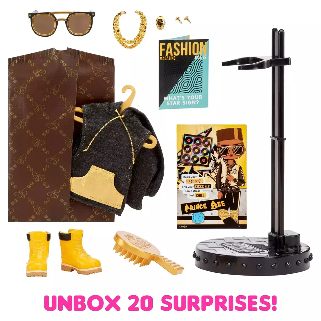 O Prince Bee é um dos personagens mais estilosos da linha LOL Surprise Boys, trazendo elegância, roupas modernas e muito brilho. Com articulações, acessórios exclusivos e embalagem surpresa, essa figura é perfeita para quem adora colecionar bonecos com visual marcante e atitude fashion.