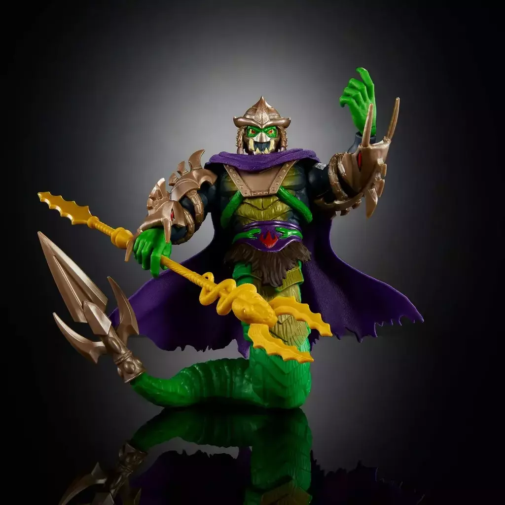 Esta figura Deluxe traz o Shredder com design inspirado no estilo MOTU, combinando armadura mística, corpo musculoso e uma presença imponente que remete aos guerreiros de Grayskull. Com múltiplos pontos de articulação, acessórios exclusivos e visual sombrio, ele está pronto para enfrentar He-Man, Skeletor ou qualquer herói ninja que cruzar seu caminho.